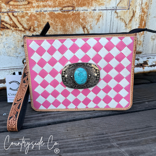 Cowgirl Candy Checkered Leather Purse with Wristlet