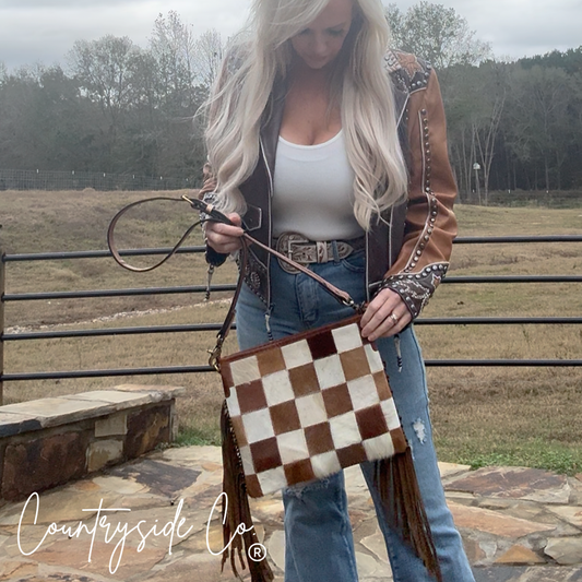 Grit and Glam Stockyards Cowhide Checkered Purse