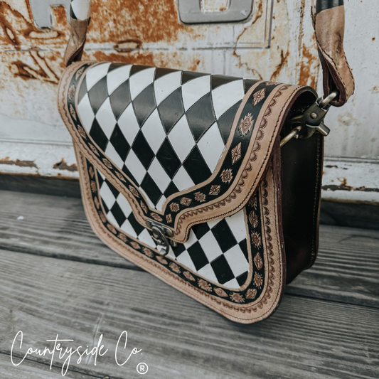 Rodeo Square Cowhide Checkered Conceal Carry Purse