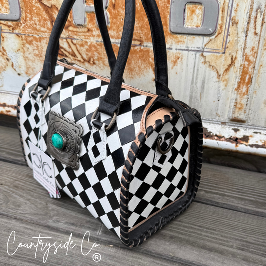 Wynonna Cowhide Checkered Concealed Carry Tote Handbag