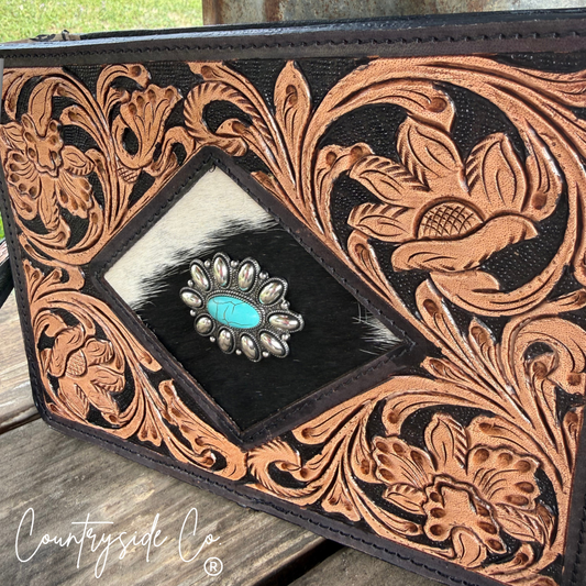 Sagebrush Tooled Leather Handbag, Wristlet