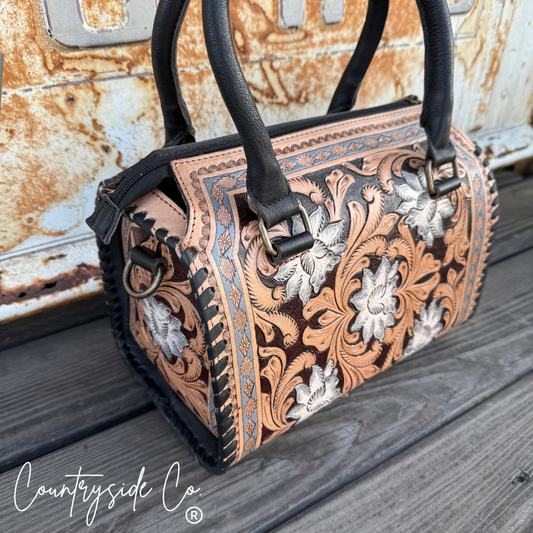 Jesse Conceal Carry Cowhide and Tooled Leather Handbag