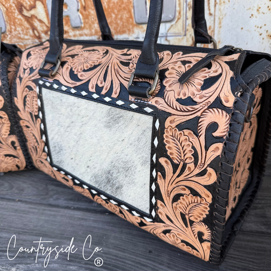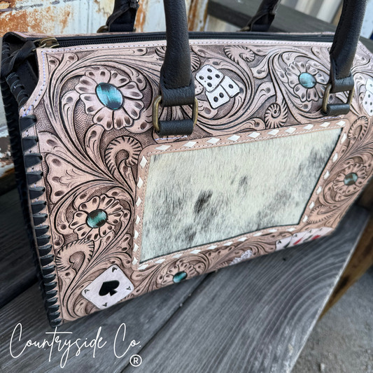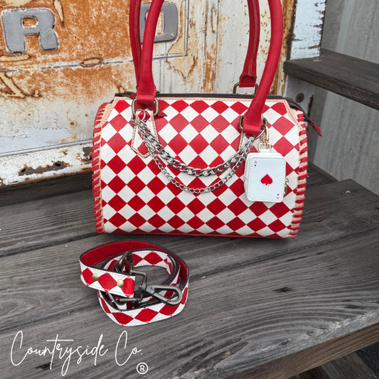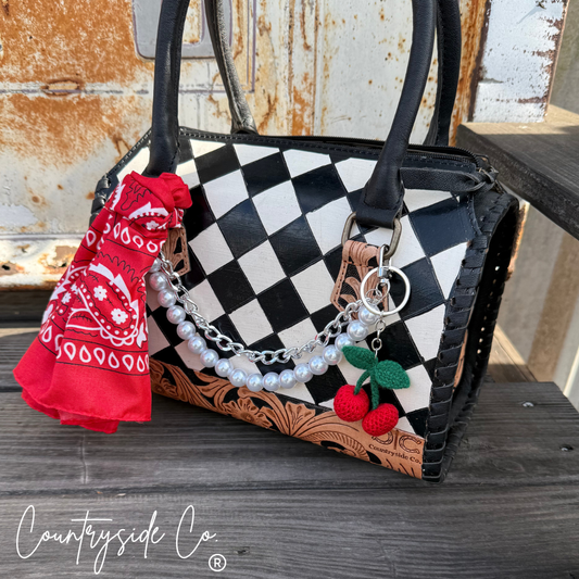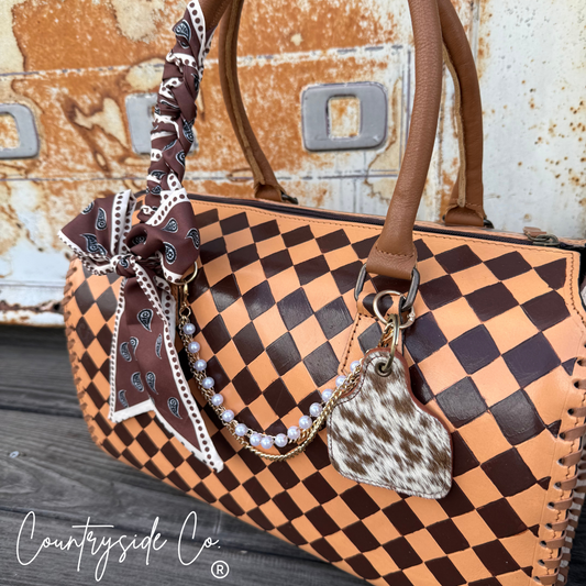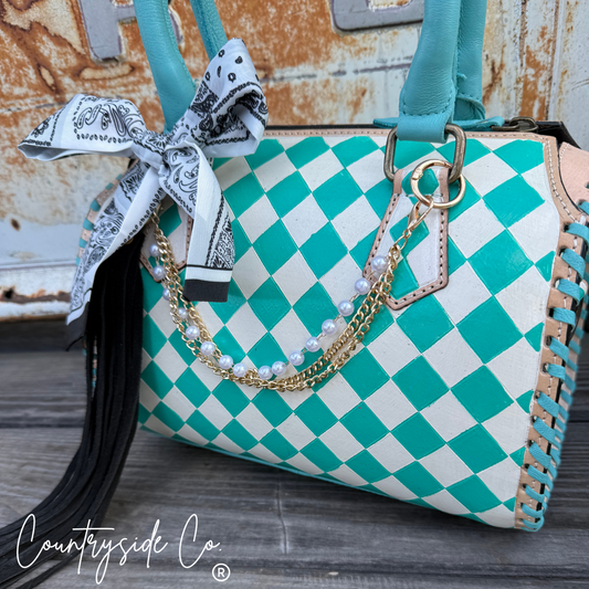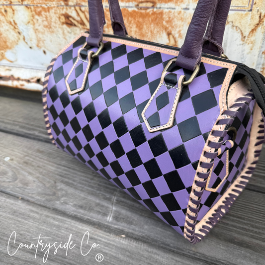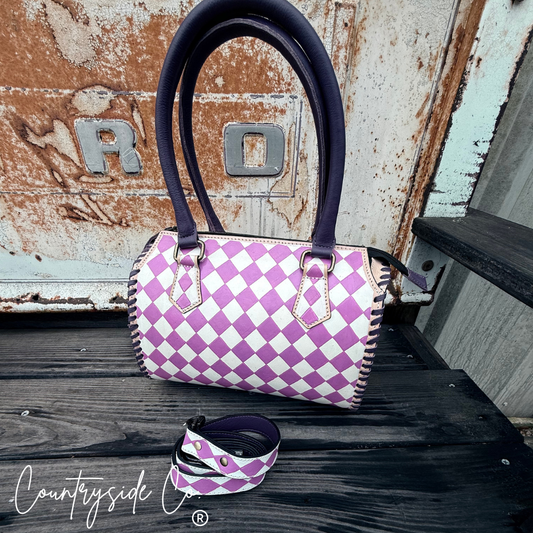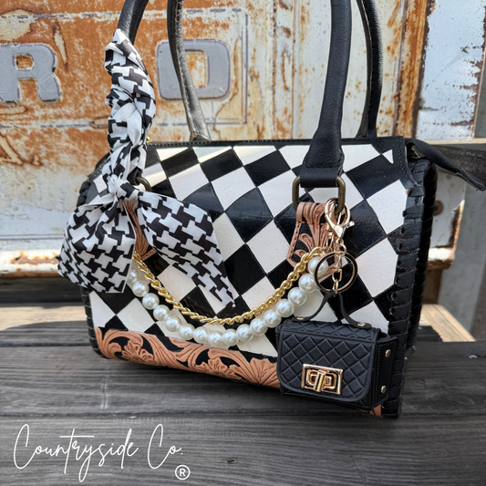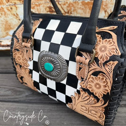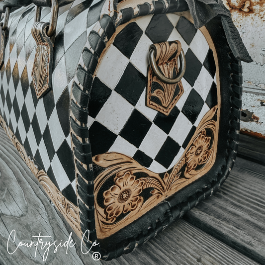 Concho Tooled Leather Checkered Speedy Bag Decorated