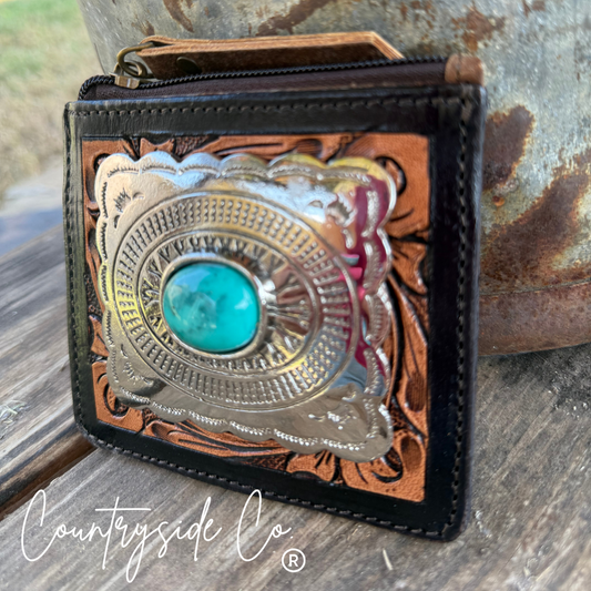 Concho Tooled Leather Small Wallet