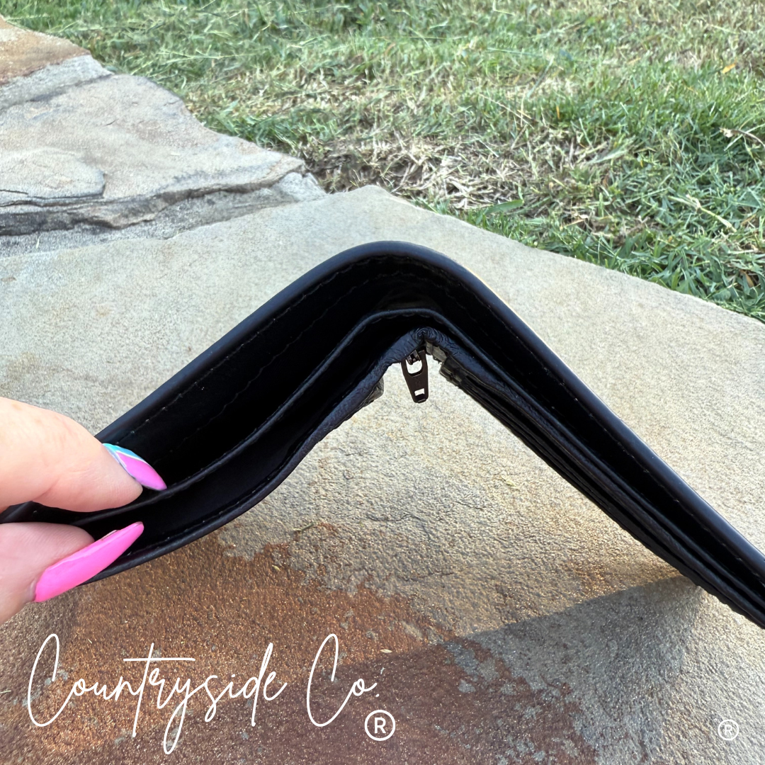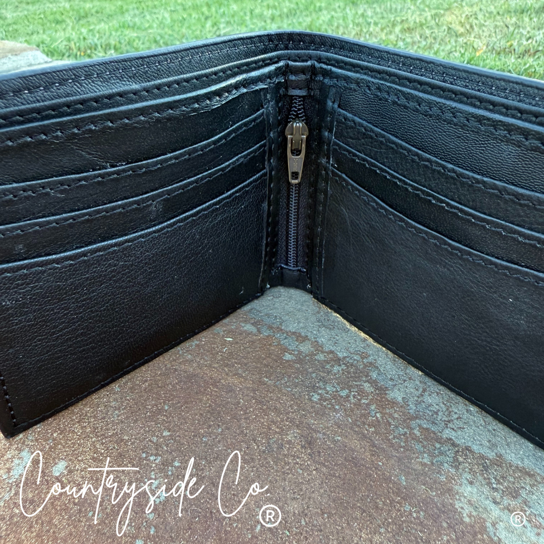 Crafted with a tooled leather and cowhide front showcasing an antiqued longhorn medallion, the Buckhorn Cowhide Men's Wallet combines rugged style with enduring quality. The smooth leather back offers a comfortable feel, making it a durable and distinguished accessory perfect for everyday use.