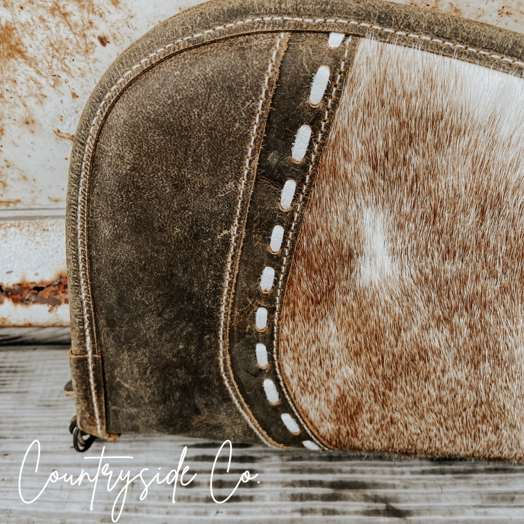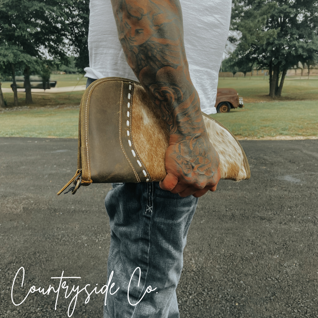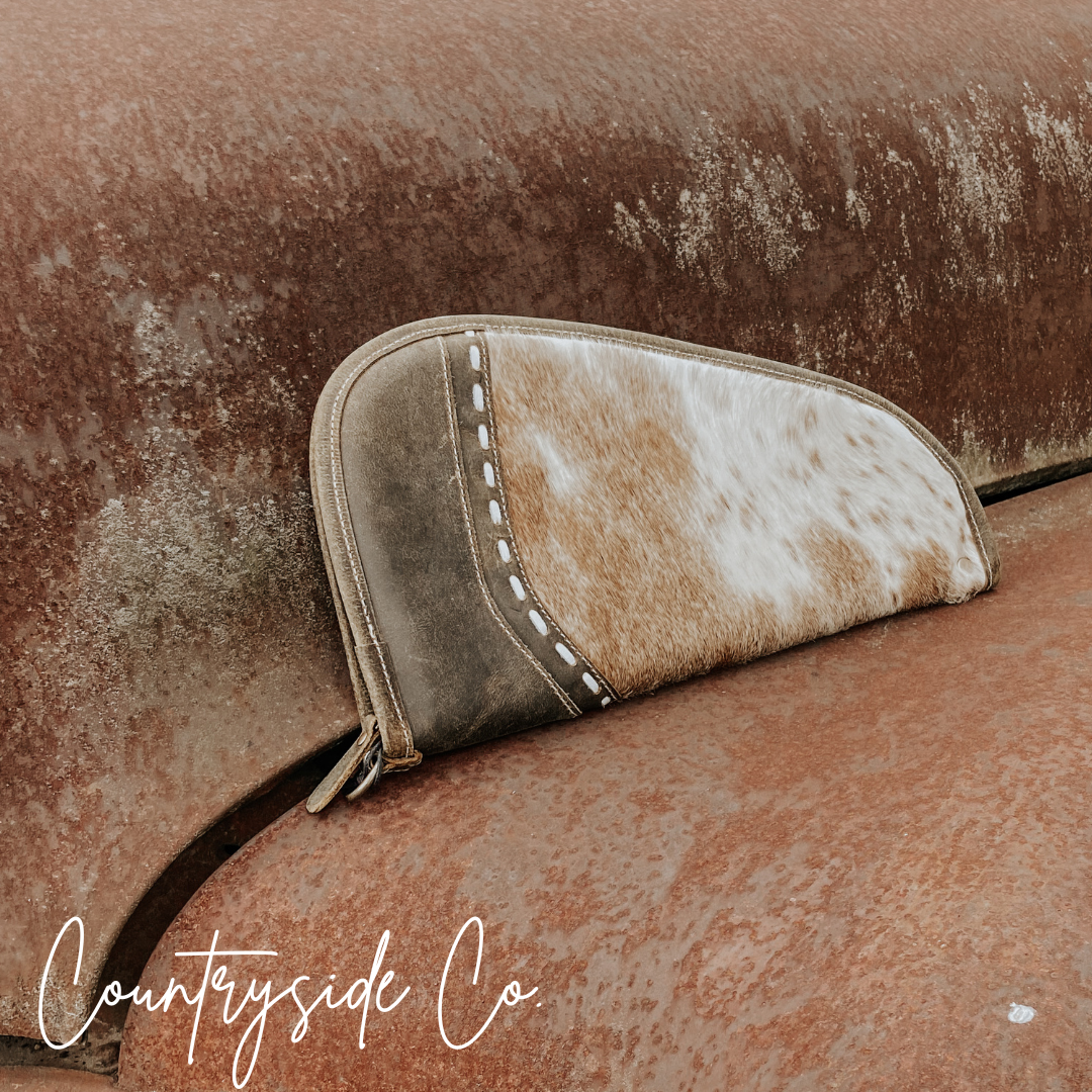 Make a statement with our unique Cowhide 15" Carry Case! Crafted from a combination of cowhide and leather, this case offers detailed stitching and a soft padding interior. Each case is one of a kind, featuring a different new cowhide. Perfect for travel, this case is both stylish and functional.
