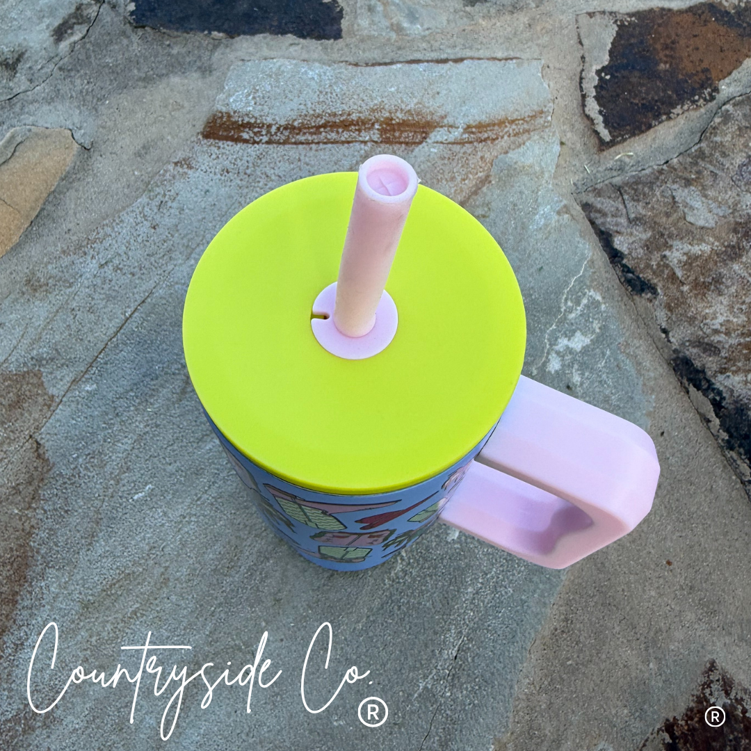 The Saddle Up 24oz Insulated Tumbler is made from sturdy stainless steel to handle all your wildest adventures packed into a smaller package. Featuring a handy reusable straw, it keeps your drinks hot or cold for hours on end. With its fun, rugged look and dependable performance, this tumbler is your perfect companion for every adventure. HANDWASH ONLY * Fun Size