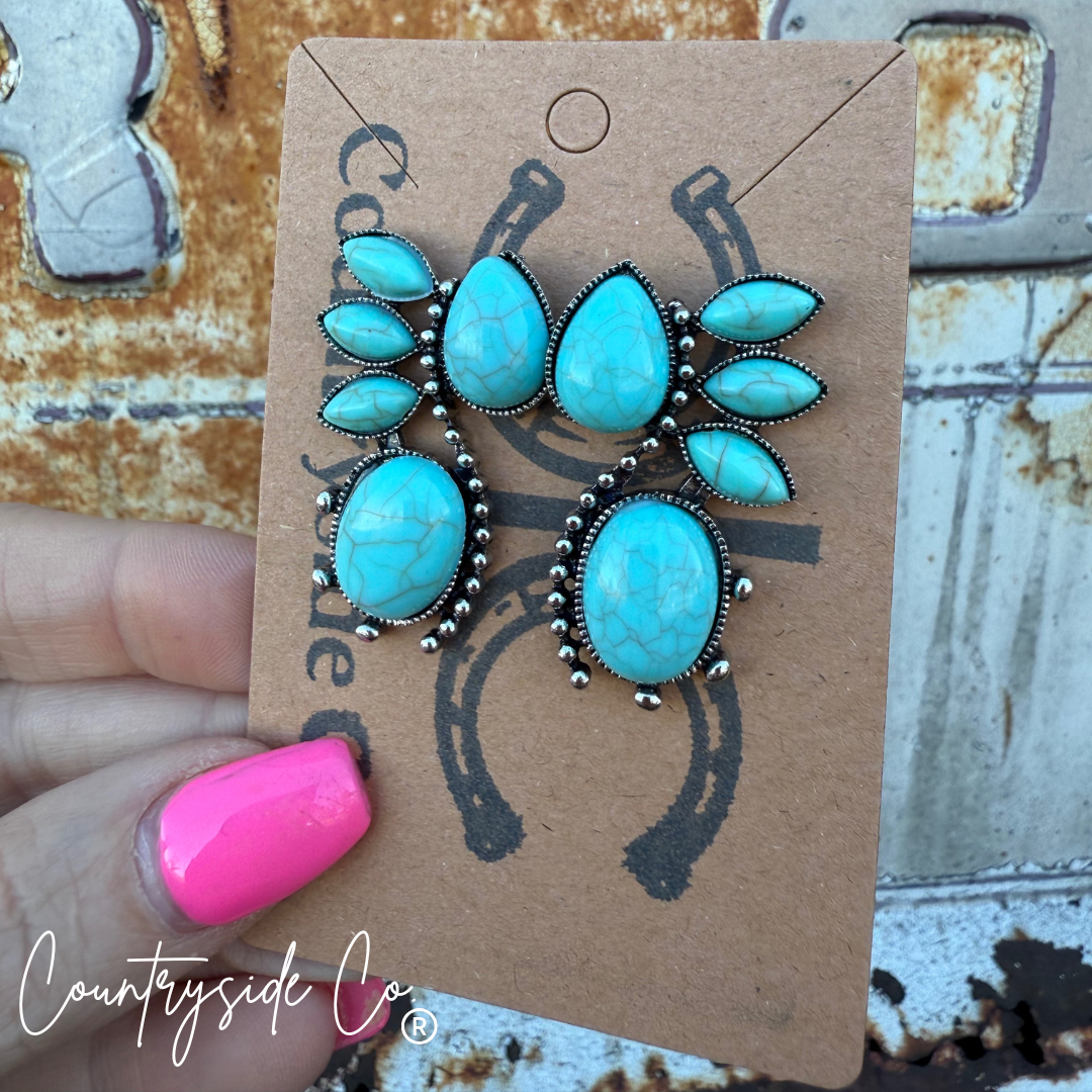 Sedona Fan Faux Turquoise Earrings