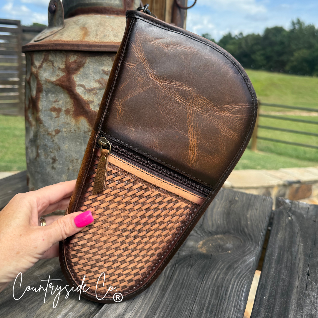 Crafted for bold adventurers, the Tacoma Leather Carry Case combines rugged style with practical design. Featuring tooled leather on the front and a secure zipper pocket, it offers style and function. The padded interior protects your essentials, while the full zipper closure ensures everything stays in place. At 11 inches, it’s the perfect size to carry confidently wherever you go.