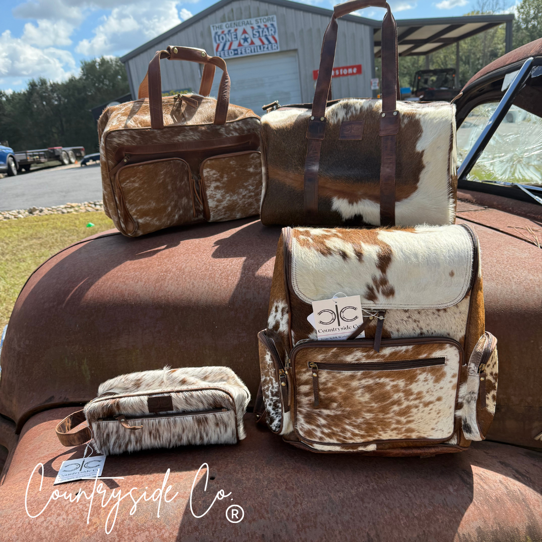 Get ready to travel in style with the Ultimate Travel BUNDLE! This set includes the Henry Duffle Bag, Saddlemen Duffle, Boulder Concealed Carry Backpack, and Cowhide Toiletry Bag—each crafted from genuine hair-on cowhide front and back. Pack up and hit the road with a bundle that’s as bold as your travel plans! Save $85.00 with this bundle, while supplies last. The pictures are for reference each item is made with genuine unique cowhides.